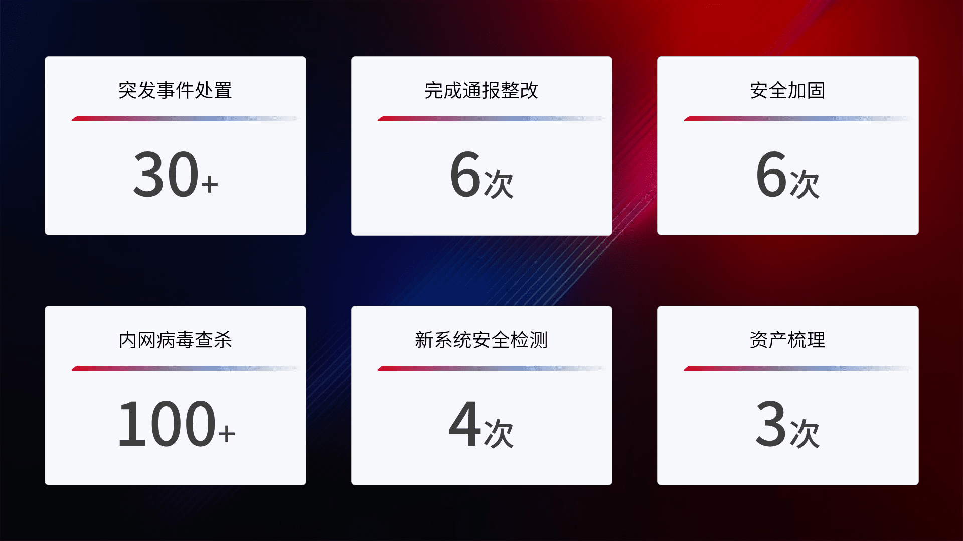 网络安全加固与风险管理:通过技术加固手段,,,,如加强区域隔离,,缩减攻击内网横向移动的范围;优化现有网络安全管理制度,,,,降低网络威胁暴露面,,,,减少被黑客攻击的可能性。。